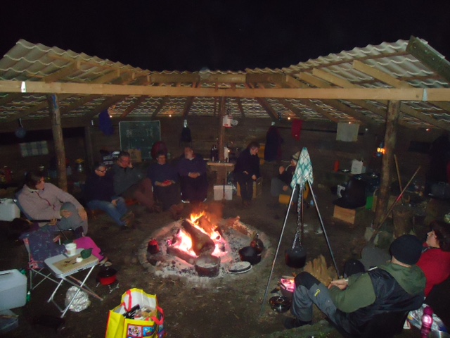Zaterdagochtend: ontvangst met koffie en appeltaart, die we gezamenlijk bakken in gietijzeren pannen boven het houtvuur.