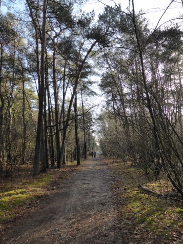 Nu moeten we nog ongeveer 5-6 km lopen in noordelijke richting om station Veenendaal-West te bereiken. Dat kan bijna in rechte lijn, wat een zekere saaiheid veroorzaakt. Geen vergezichten meer want één en al bos, ongeveer 3,5 km lang. Maar het is heel makkelijk om een zijweg in te slaan, want overal zijn paden. We passeren rakelings de top van de Elsterberg (62,5 meter hoog). De laatste 2 km voeren eerst door het randgebied van Veenendaal, hobbyland voor paardenliefhebbers dacht ik toen ik kortgeleden (op een zondag) de route verkende. En ten slotte door een keurige stadswijk met dorpse trekken, waar de wisselende tuinaanleg de aandacht trekt.